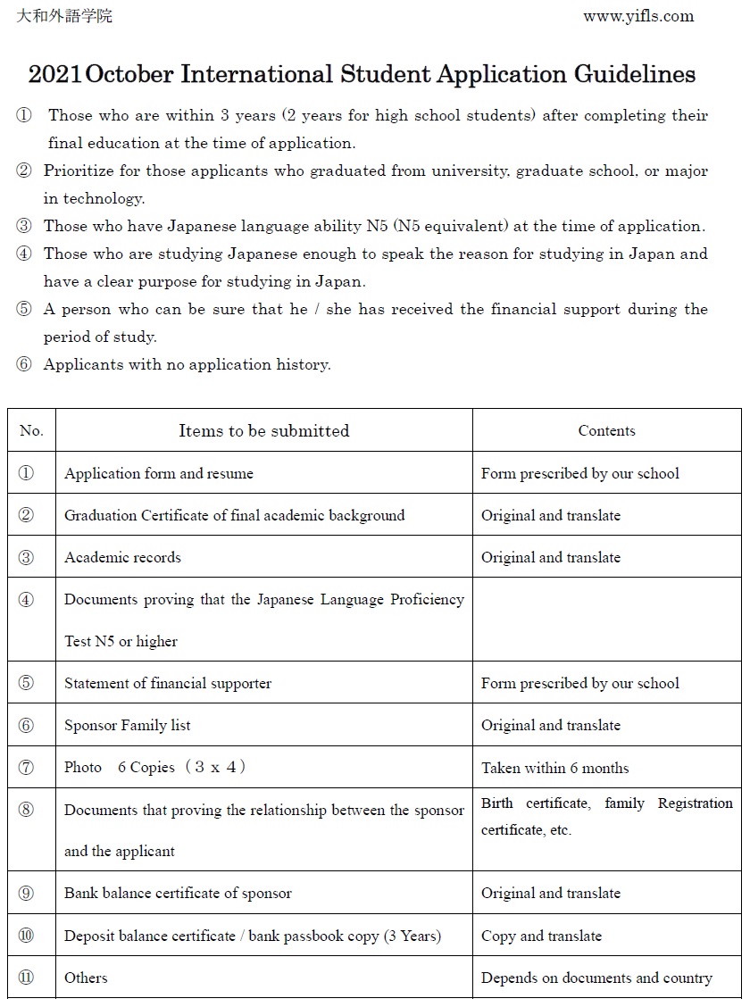 | 3.Bank balance certificate (2 years course : 3 million yen or more, 1 year 6 months course 2.25 million yen or more equivalent) and a copy of the passbook (3 years or more) | |||